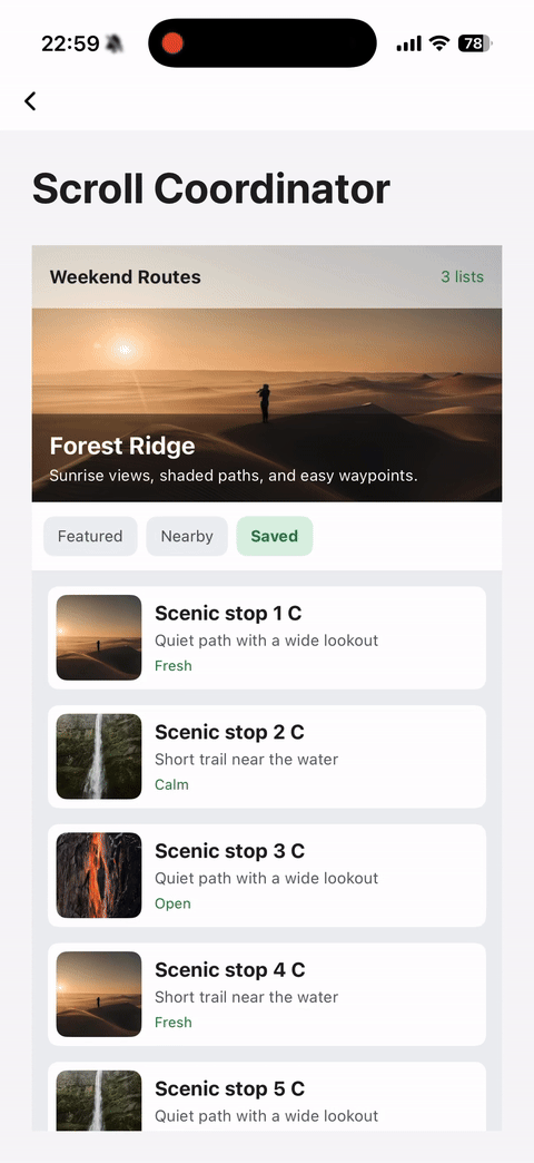 <list>must be placed inside<scroll-coordinator-slot>to enable vertical coordinated scrolling