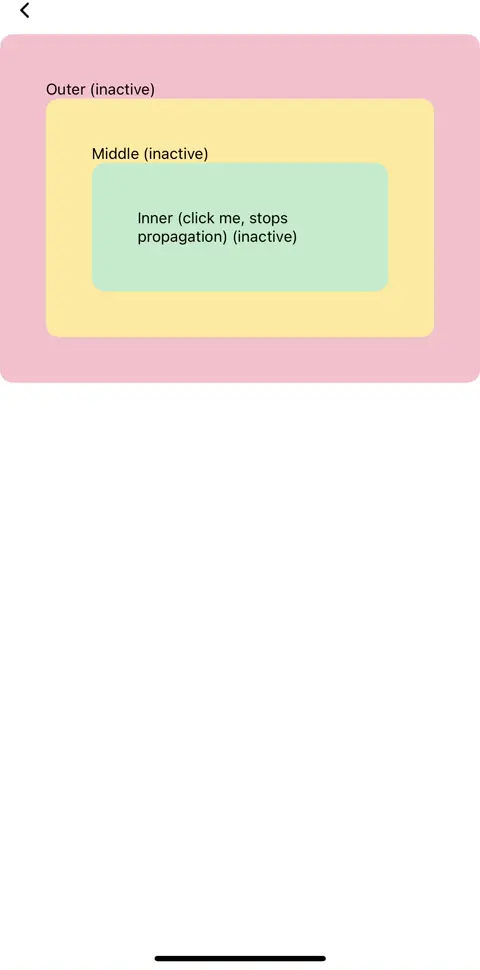 In the above example, when the user clicks any node on the page, the event will bubble from the child node to the parent node by default. Therefore, the parent node can always listen to the tap event and change the background color of the node.