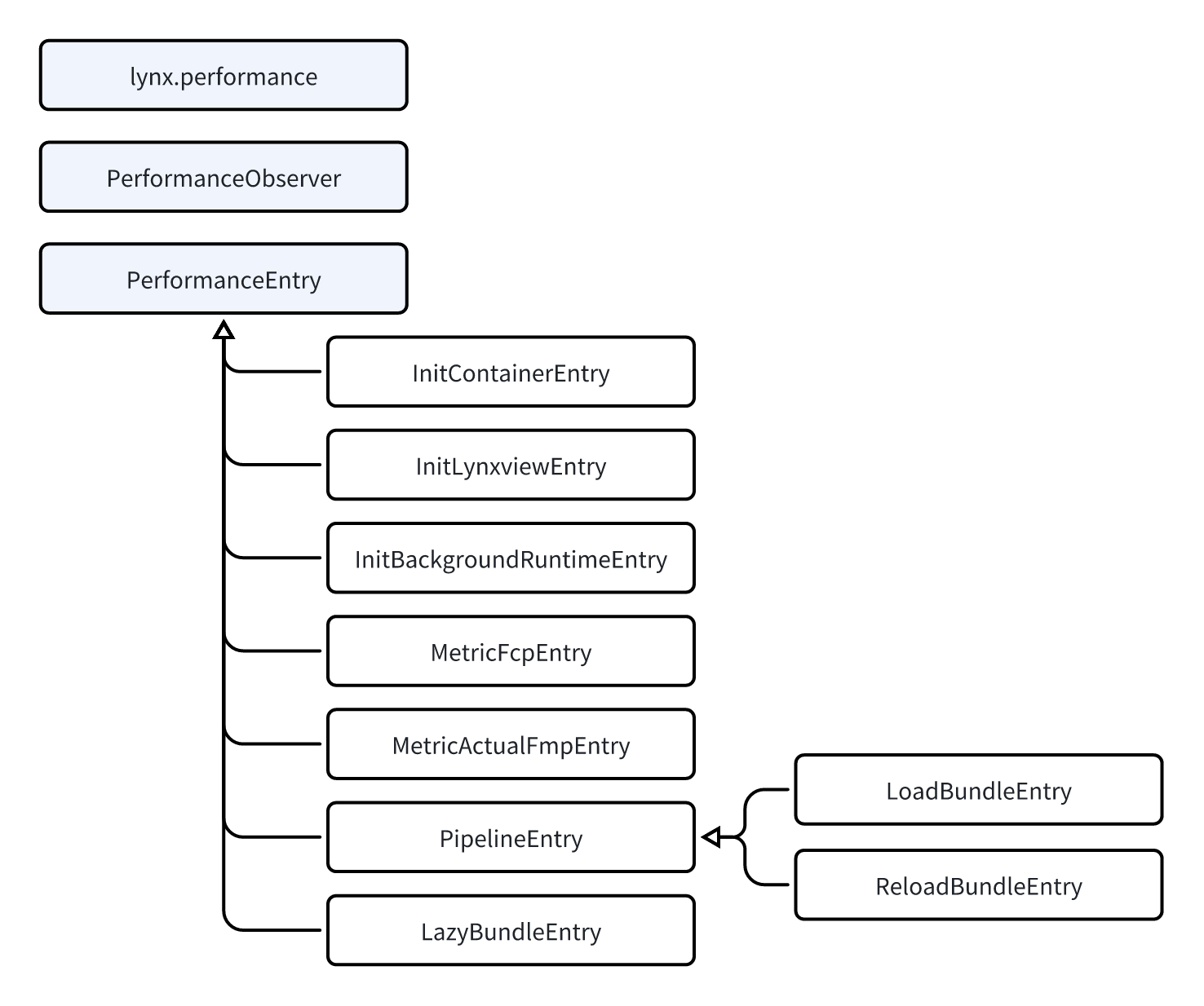 LazyBundleEntry :懒加载 TemplateBundle 性能事件为了获取上述性能事件,Performance API 提供了 PerformanceObserver 来让开发者观察性能事件,并在 Lynx Engine 产生性能事件 (PerformanceEntry) 时收到通知。